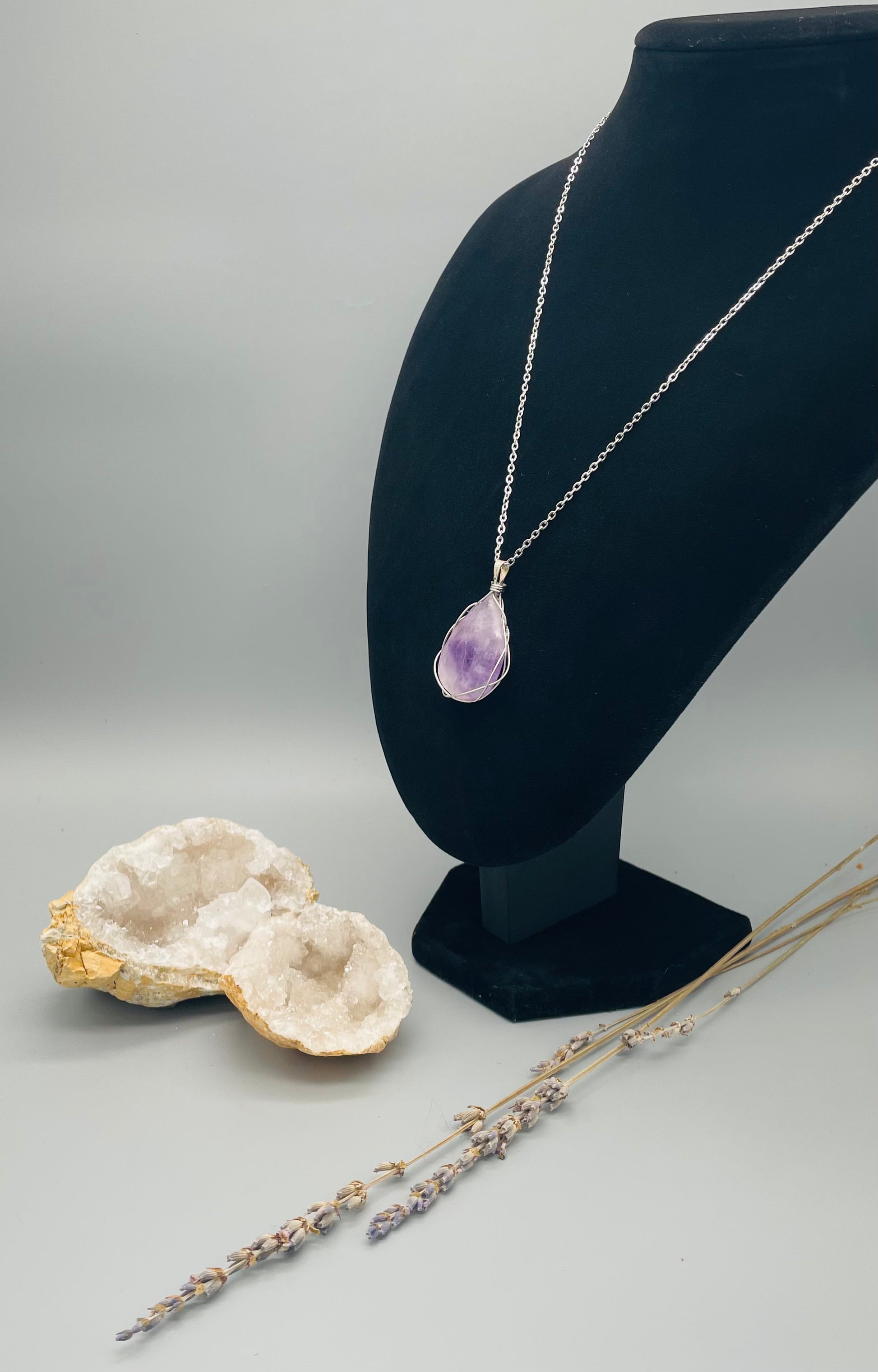 Amatista en Collar con Alambrismo - Cabujón Lágrima