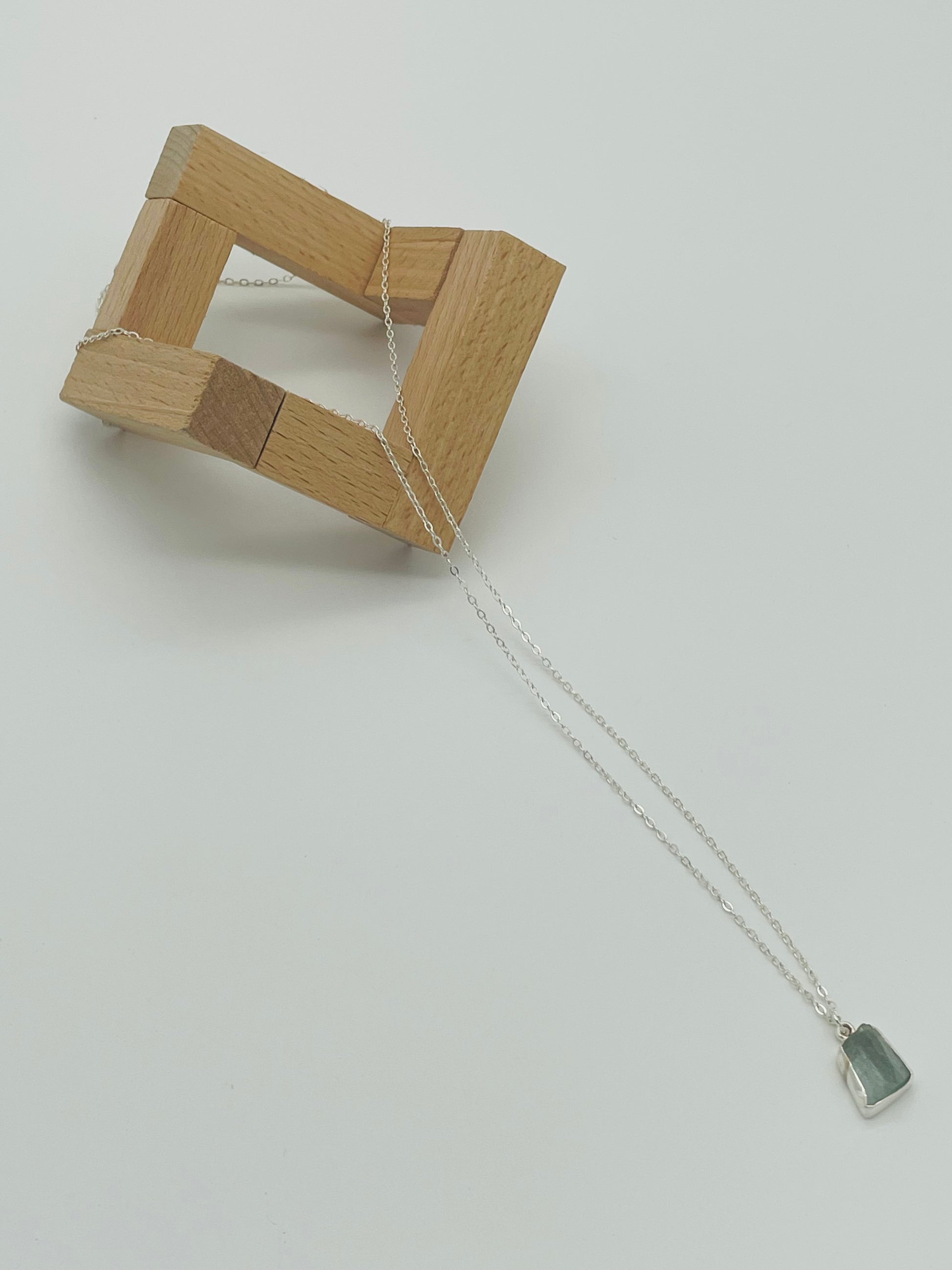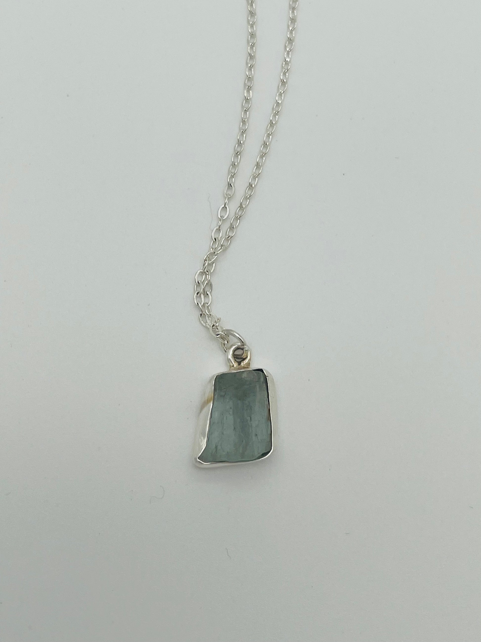 Collar de alta calidad de aguamarina natural pulida enmarcada en plata de ley 925, suspendida en una elegante cadena de plata de ley de 50cm.