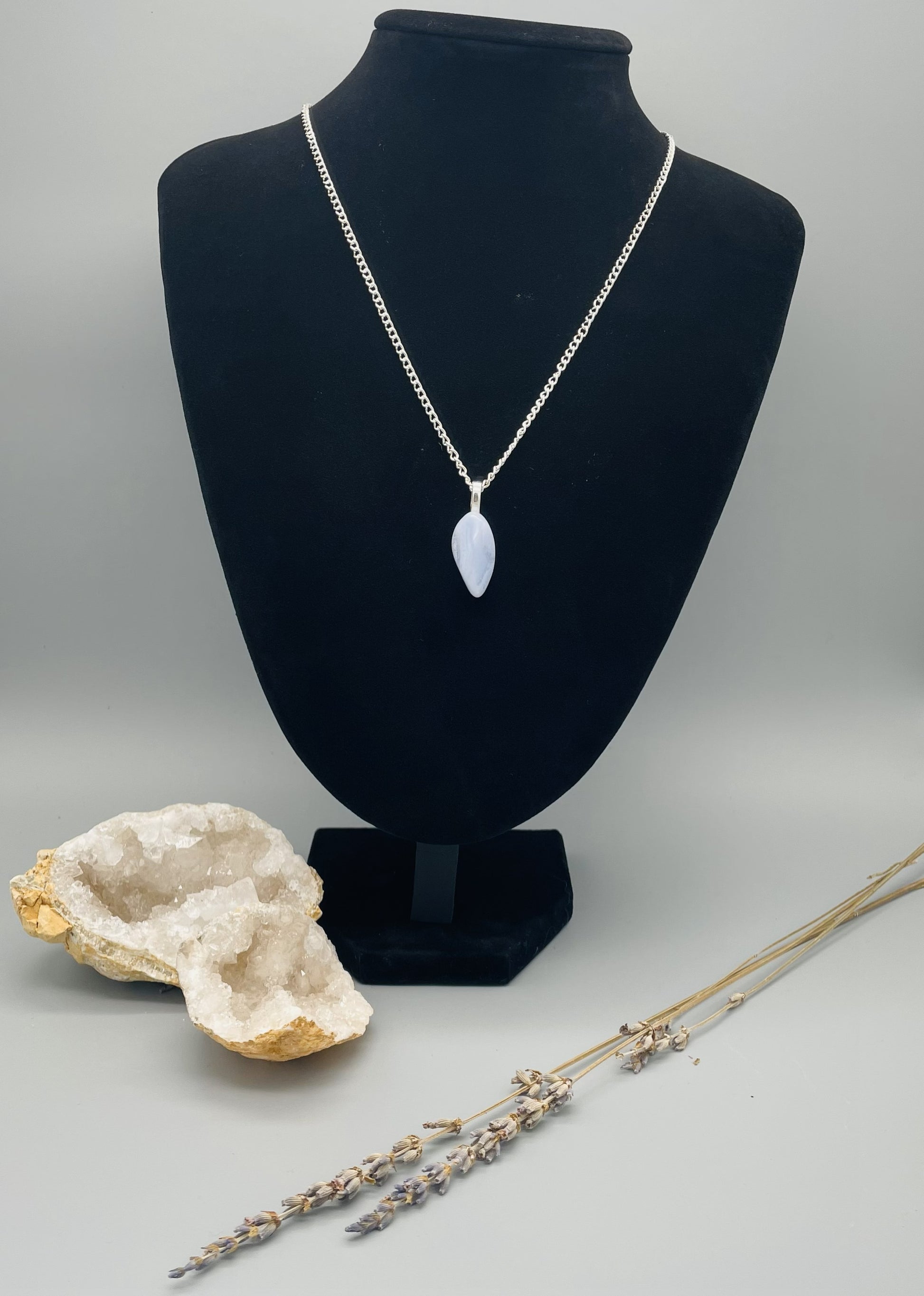 Descubre la belleza orgánica de la Calcedonia en este collar artesanal de estilo natural.