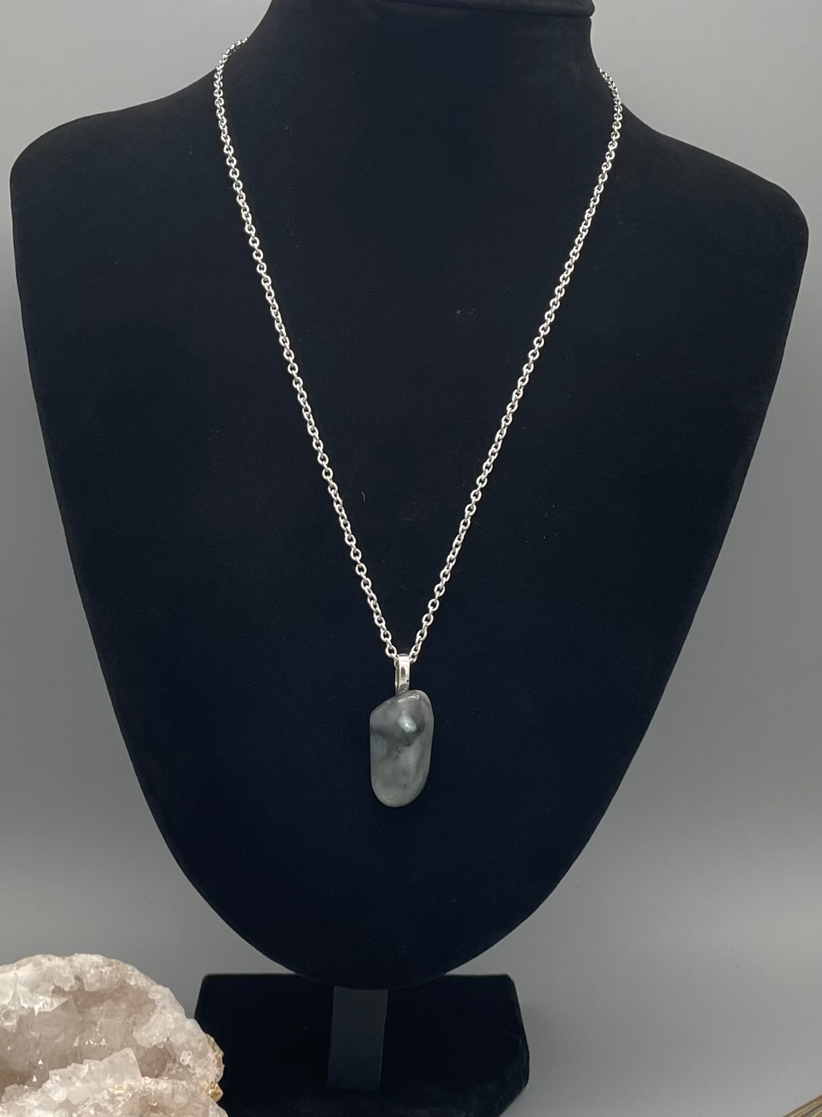 Esta piedra de Esmeralda natural en bruto, sin tallar, conserva su forma orgánica y su energía pura, creando una pieza única y llena de carácter. Suspendida en una elegante cadena plateada de acero inoxidable de 60 cm con un gancho de aleación de plata tibetana, este collar combina la belleza natural de una gema preciosa con un acabado impecable.