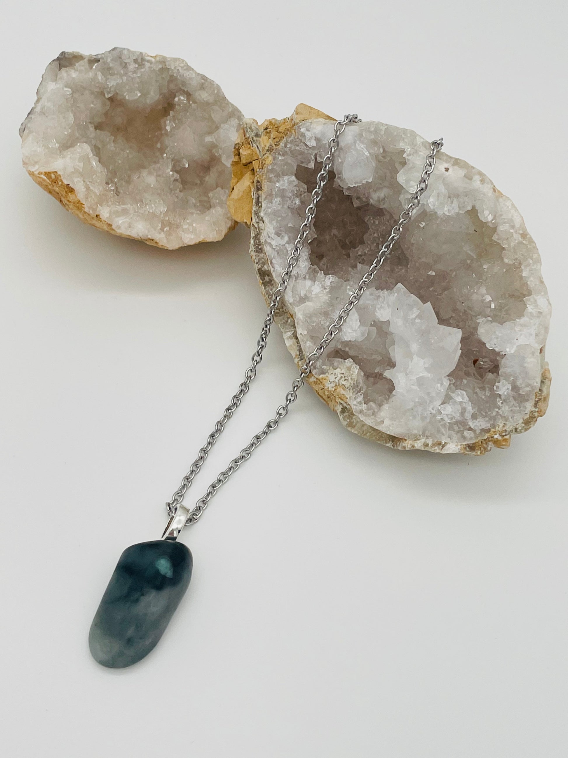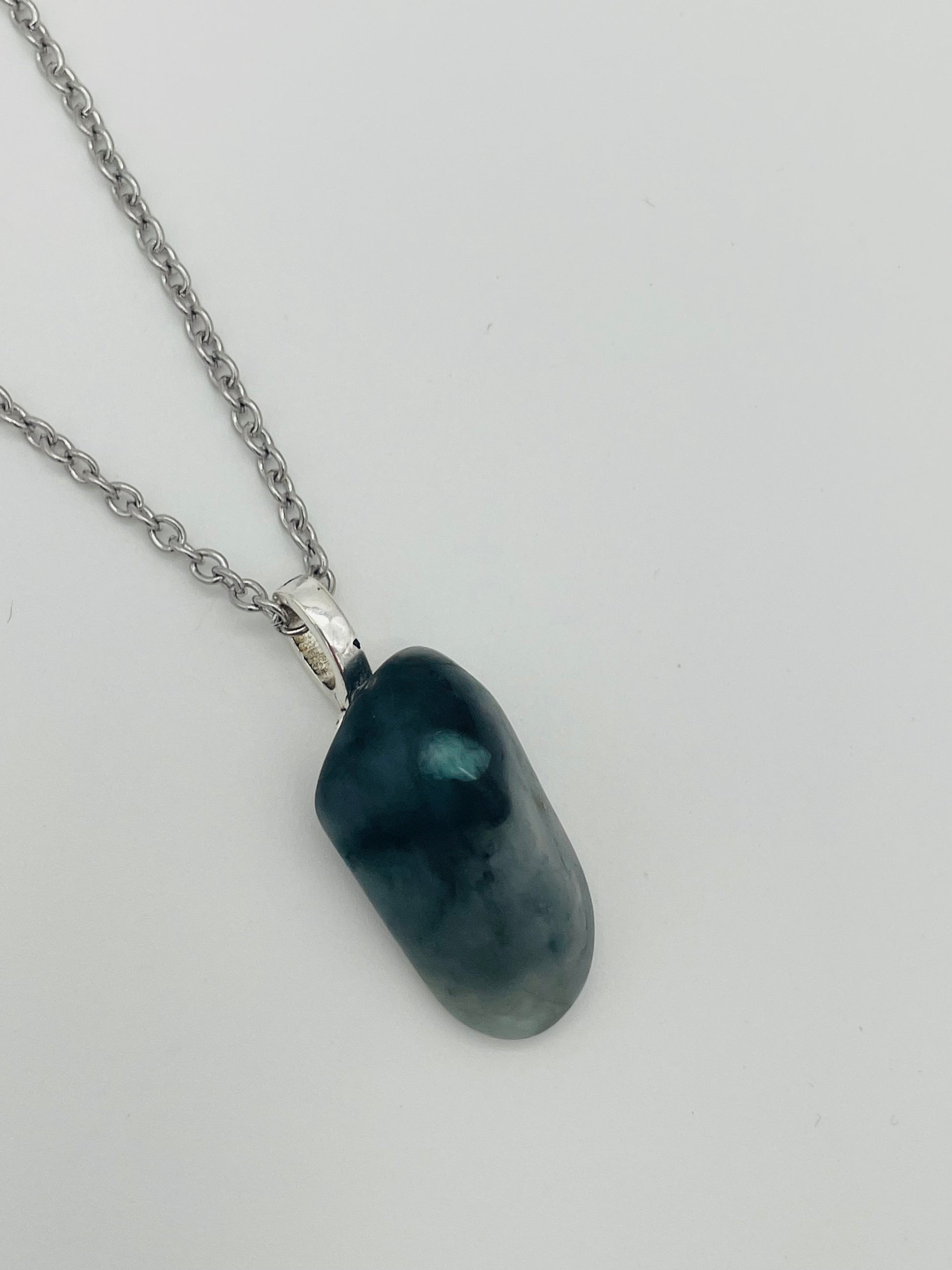 Esmeralda Natural Pulida en Collar - Cadena Plateada 60cm Acero Inoxidable
