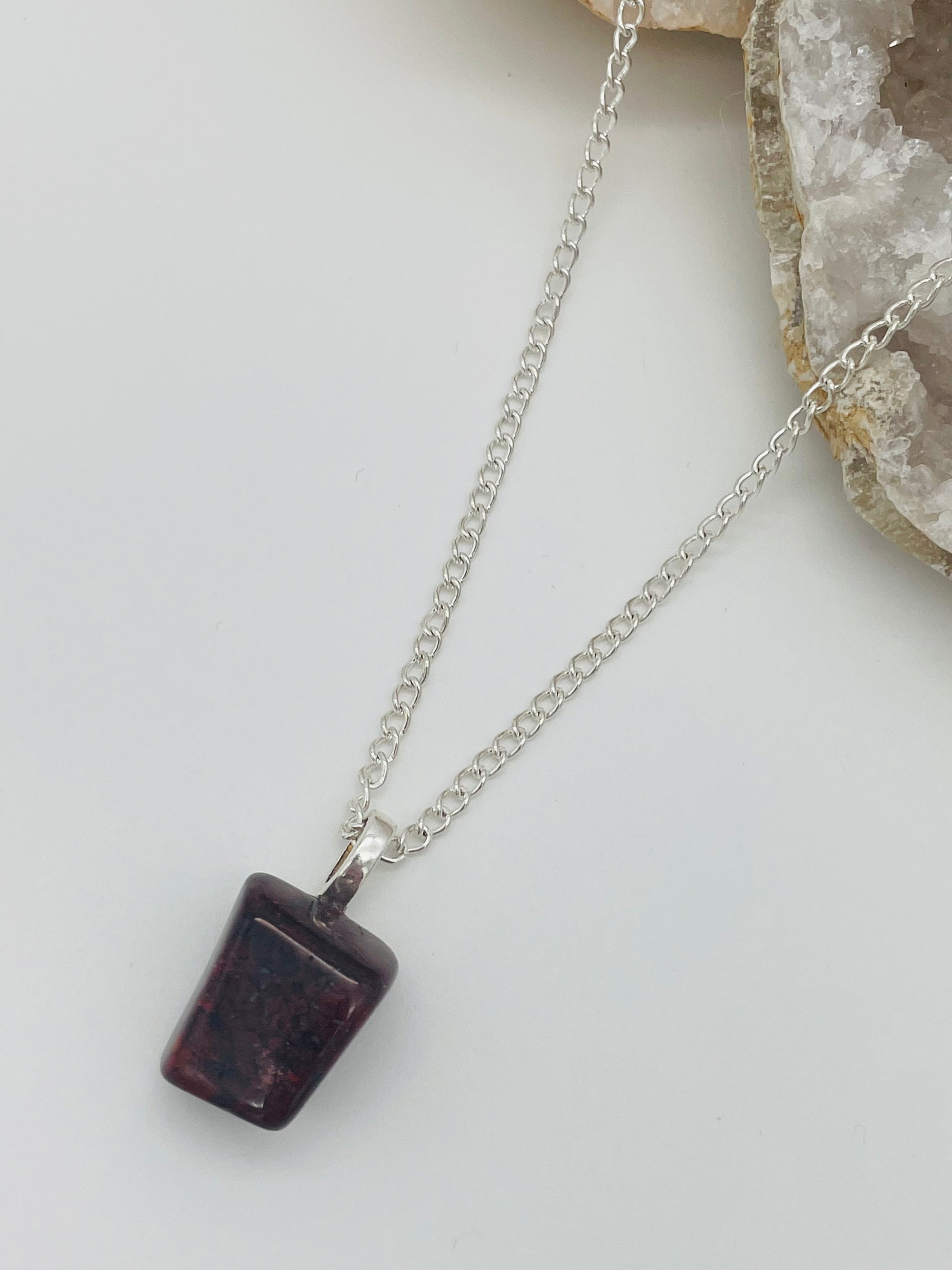 Jaspe Sardo en Collar con Cadena de Acero Inoxidable - 60cm