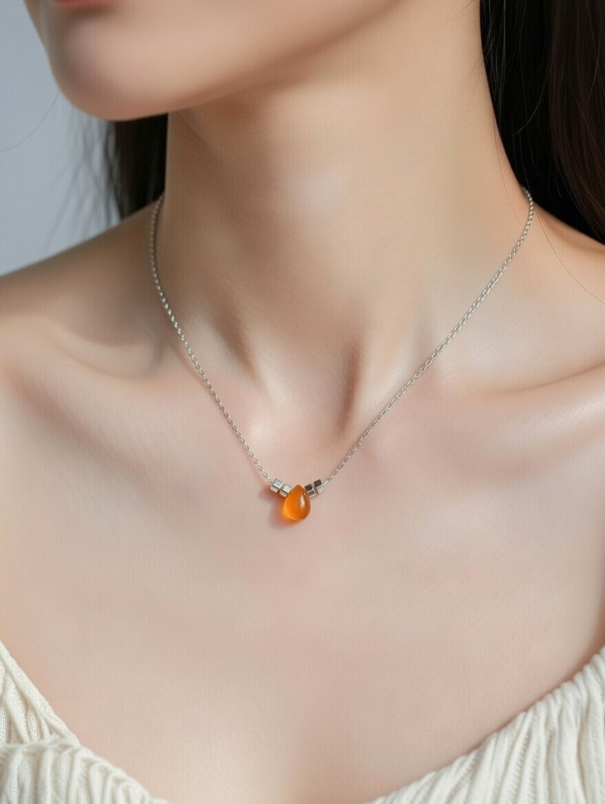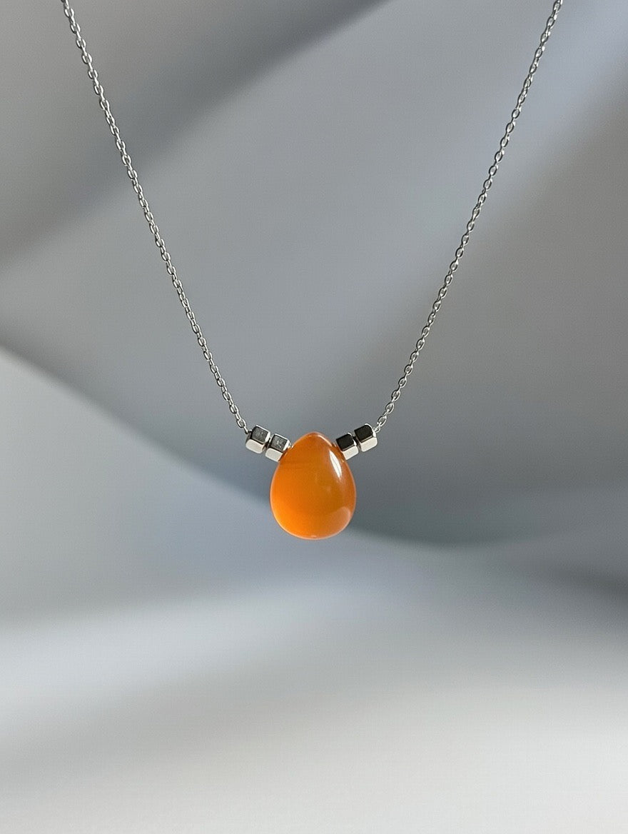 Collar Lágrima Cornalina Acero Inoxidable 50cm
