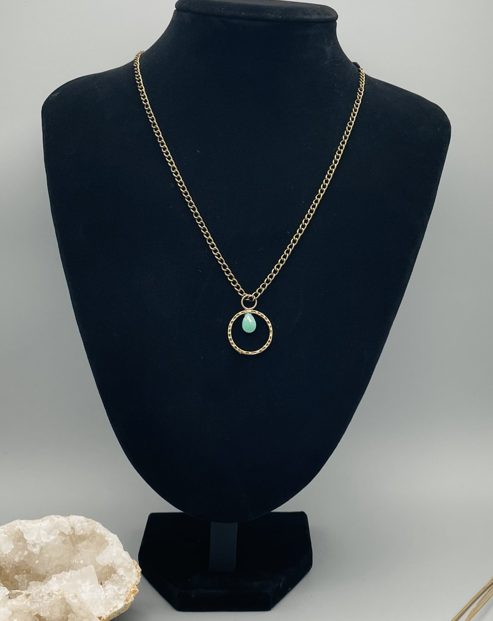 Collar Lágrima Crisoprasa Aro Bronce Martillado 50cm
